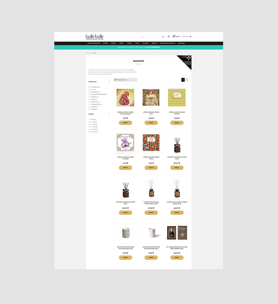 Sukurti modernią, patogią, patrauklią interneto parduotuvę. Dizaino sprendimui reikalingas ne tik jo pritaikymas išmaniesiems įrenginiams, bet ir atitikimas prekės ženklo dizaino gairėms.