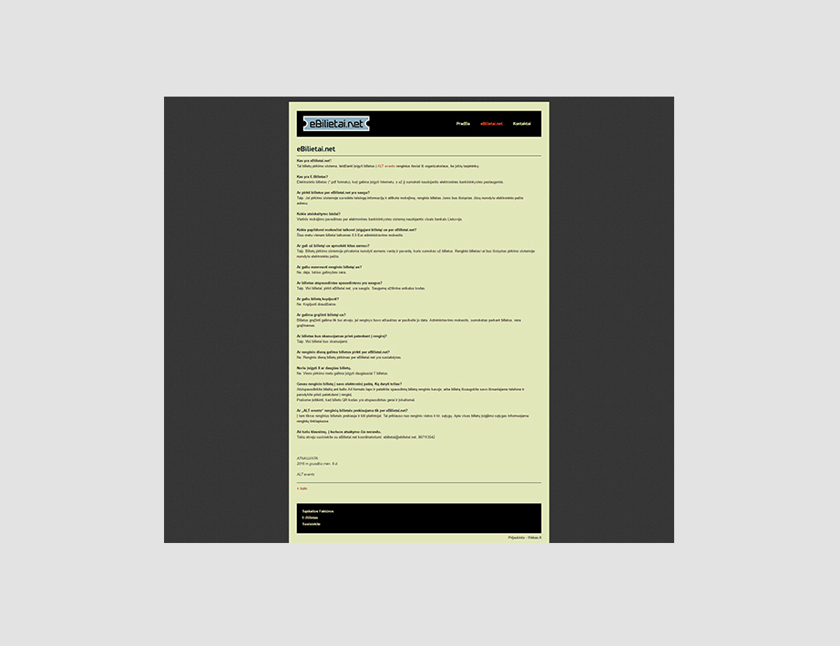Alternatyvios muzikos renginių organizatoriai nesiekė konkuruoti su populiarių bilietų platintojų sistemomis, formuluodami užduotį mums nežarstė madingų interneto technologijas apibūdinančių frazių. Jiems buvo reikalinga palyginti paprasta, tik jų vienų poreikius tenkinanti bilietų pardavimo sistema.