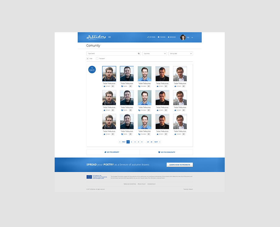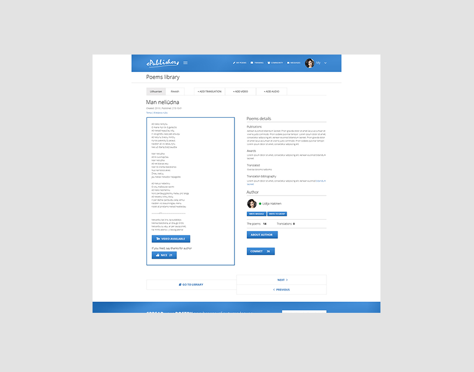 The multifunctional platform dedicated to the creative community. The platform where poets are able to publish their work, communicate with each other and translate available work to different languages.