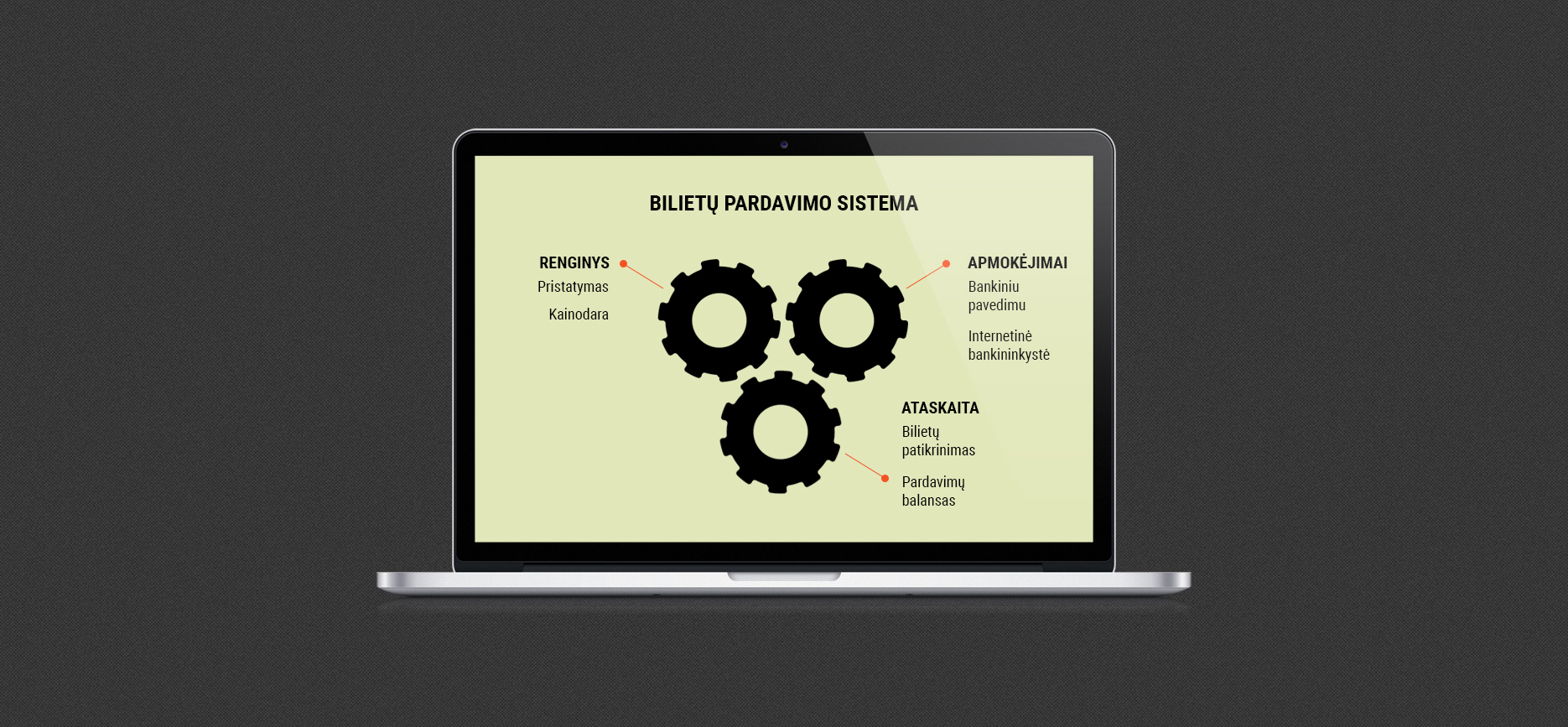 Susikoncentravome ties būtinaisiais vartotojo poreikiais ir juos tenkinančiomis funkcijomis: išsirinkti bilietus, už juos sumokėti ir gauti el. paštu.