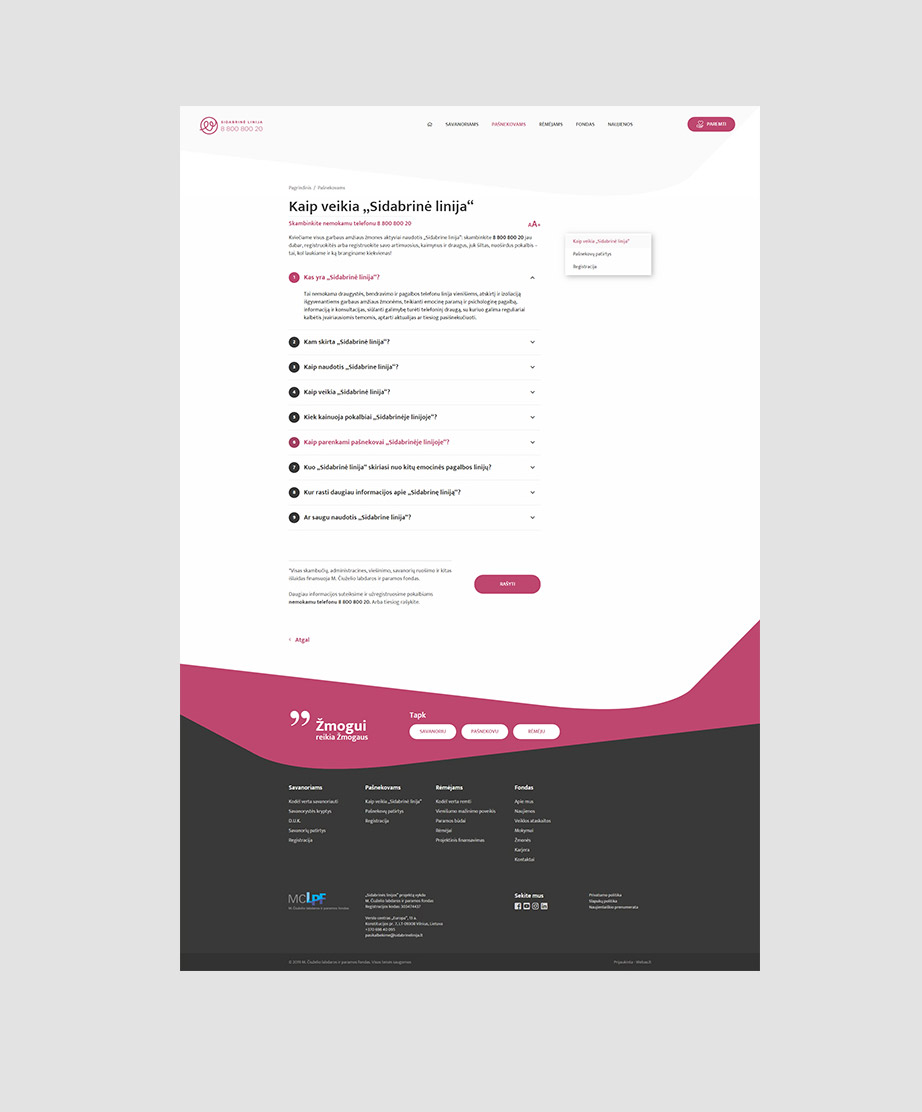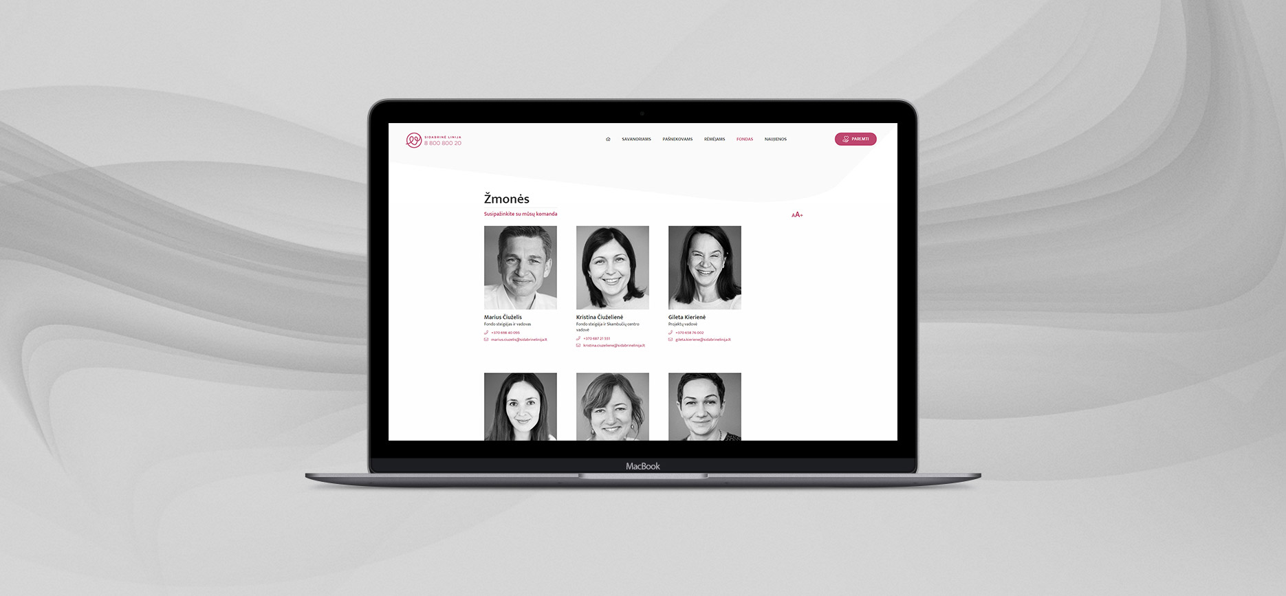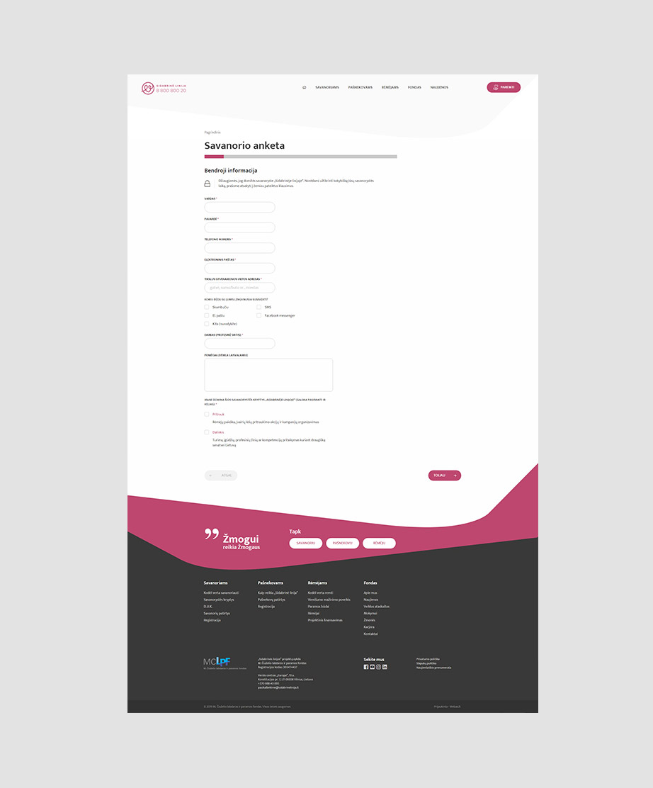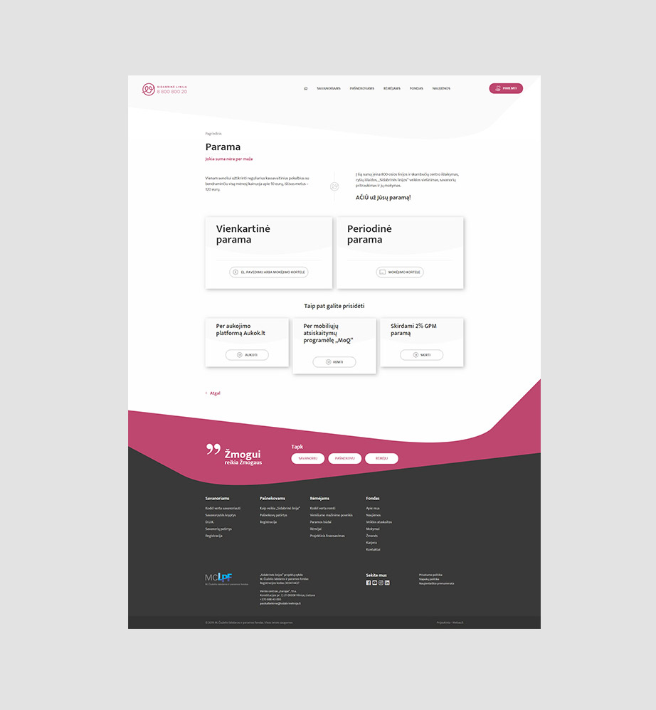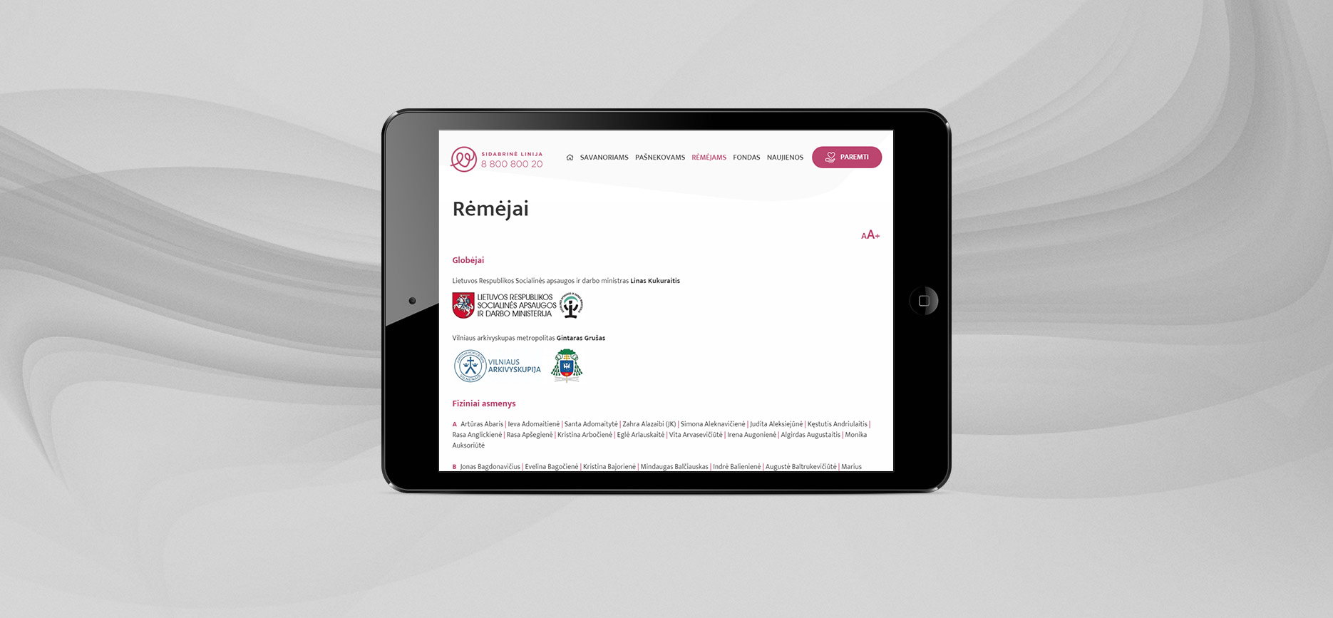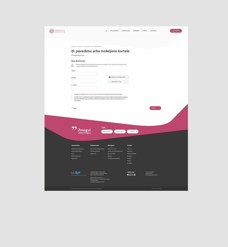 Užduotis sukurti patrauklią ir aiškią interneto svetainę su paramos priėmimo internetu sprendimais, anketa savanoriams.