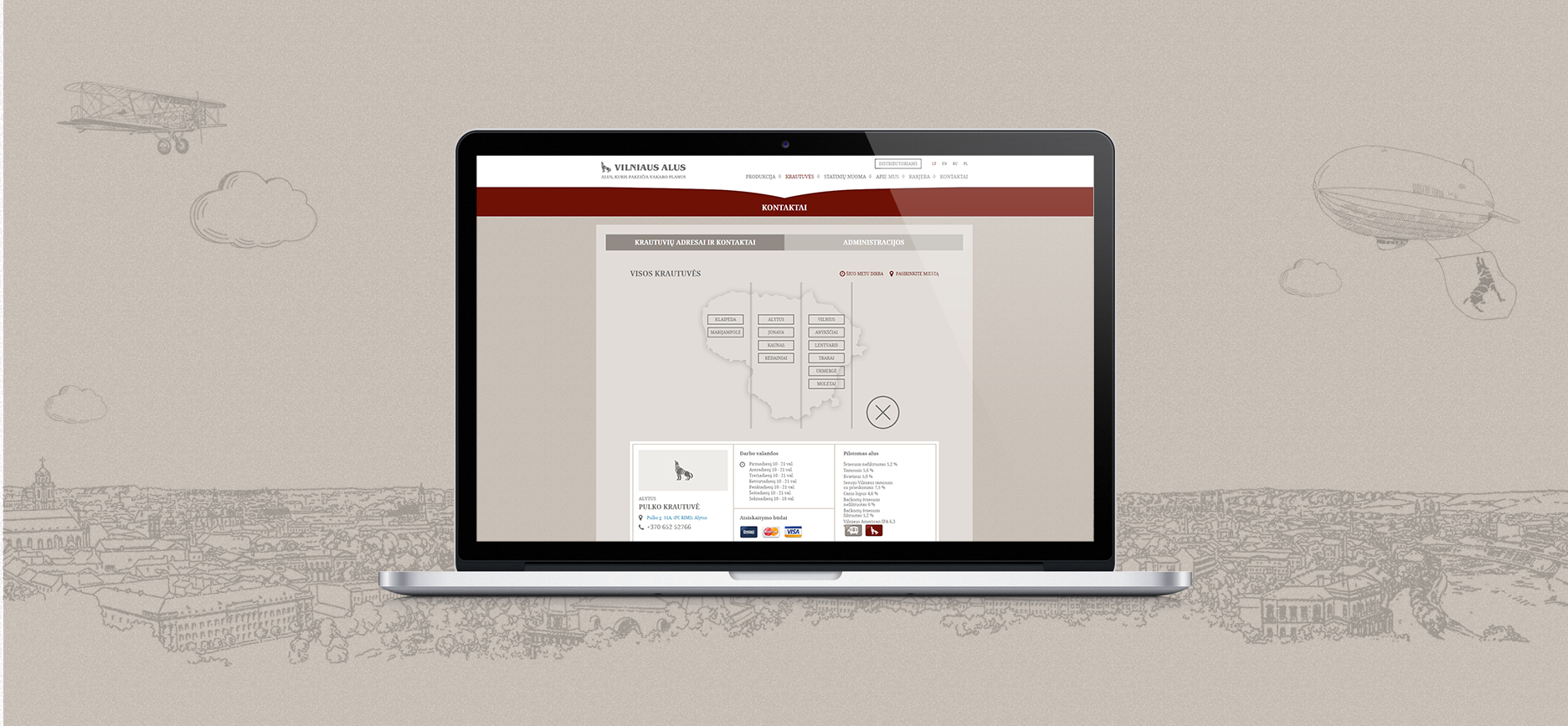 Vartotojo dėmesį nukreipėme ten, kur reikia. Pavyzdžiui, krautuvių filtre panaudojome kiek nestandartinį sprendimą (taip ne tik lengviau rasti reikiamą miestą, bet ir gerai matosi parduotuvių tinklo apimtys); taip pat žymiąją iliustraciją, kad neužgožtų produktų, nutūpdėme puslapio apačioje bei papildėme keletu jungiančių detalių.