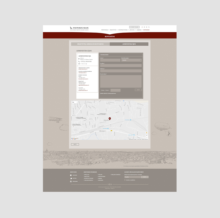 Detalės užgožia visumą - taip būtų galima apibendrinti senosios įmonės svetainės problemas. Žinoma, Johano Grutzkos tapytų Vilniaus paveikslų detalės yra svarbi „Vilniaus alaus“ tapatybės dalis, tačiau juk nebūtina jai skirti viso puslapio, o lankytojui tiesioginę naudą duodantį turinį palikti nuošalyje. Kita problema buvo padrika, grynuoju tekstu sudėta informacija.